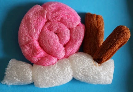 Nella lumachina la casetta è la solita spirale, mentre per le antenne abbiamo diviso a metà nel senso della lunghezza un cilindretto.